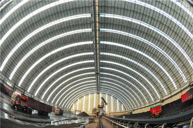 堆场料场封闭式主体结构为新型的钢乐平网架结构,维修结构为钢结构乐平不锈钢板和纤维增强塑料灯具,其外形以乐平网架式和平板为主,连接柱乐平施工自由,设置喷雾自动喷水系统,从而可以实现棚内所有物料的覆盖,减少物料在运输过程中的损耗,起到防尘的作用,减少工厂关闭后的二氧化硫排放量,50mg/m3颗粒排放量小于10mg/m3,非常适合低能耗。低闭库自动感应反应对库存轮胎进行清洁,确保轮胎不受道路污染;封闭的储存区可从源头控制粉尘污染,控制无序排放。